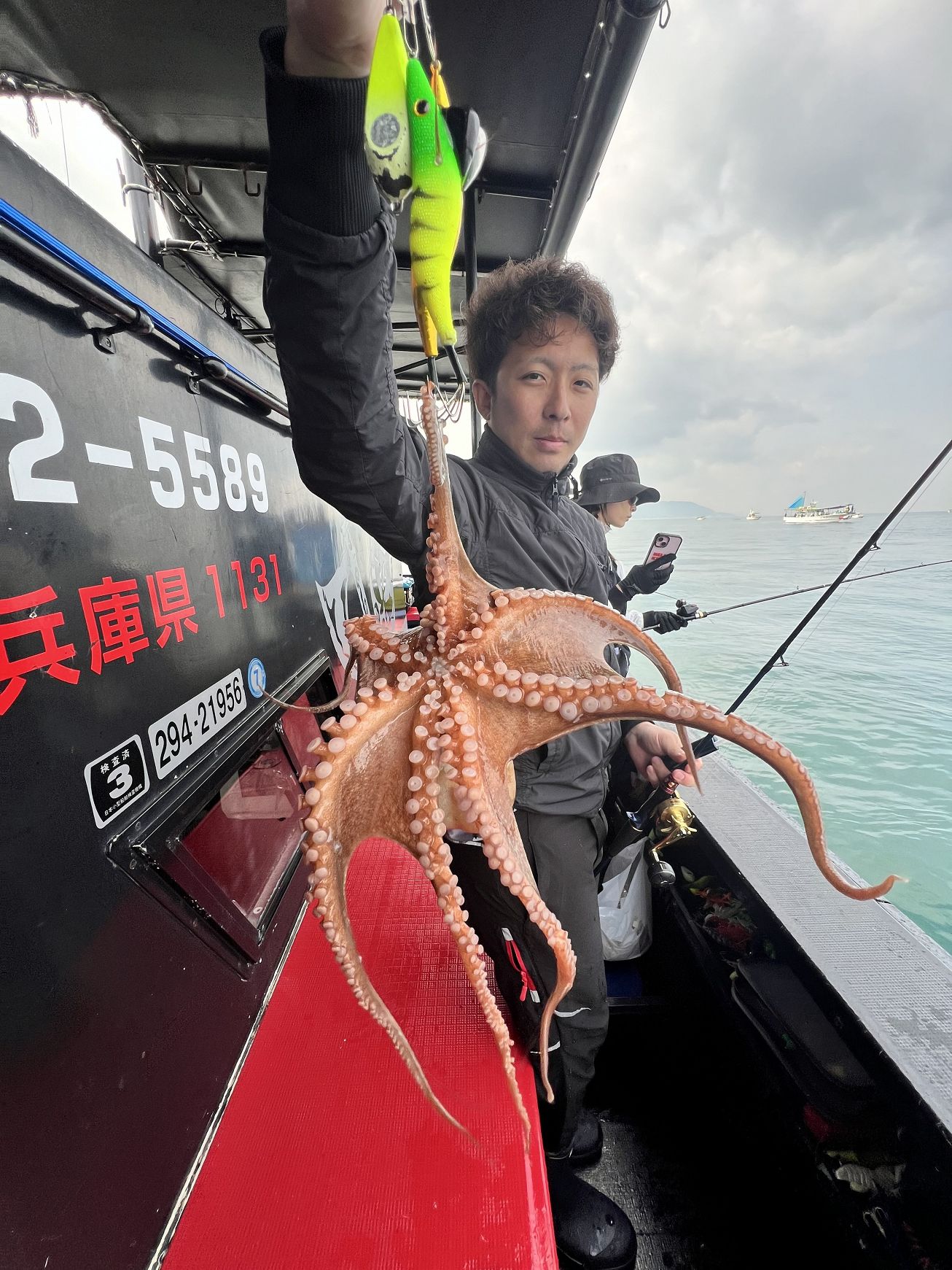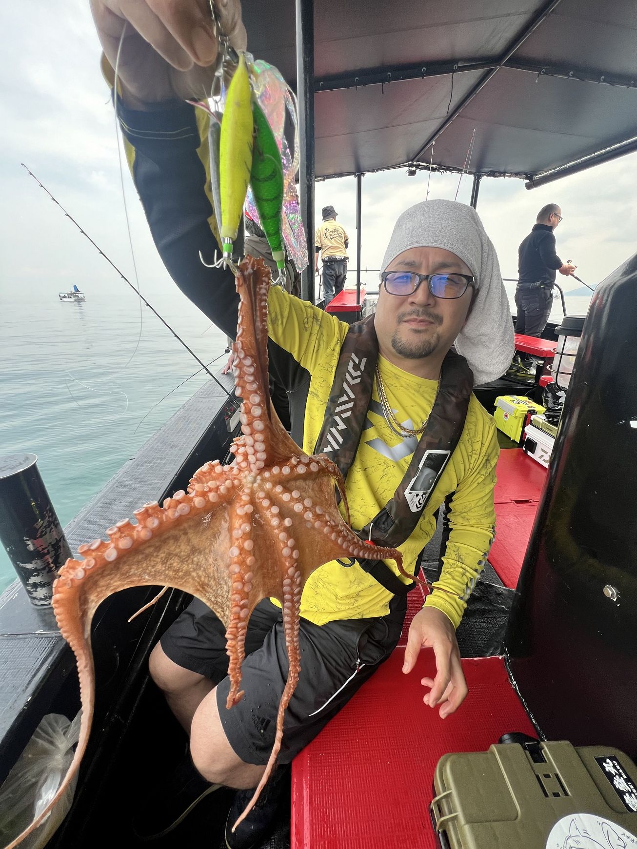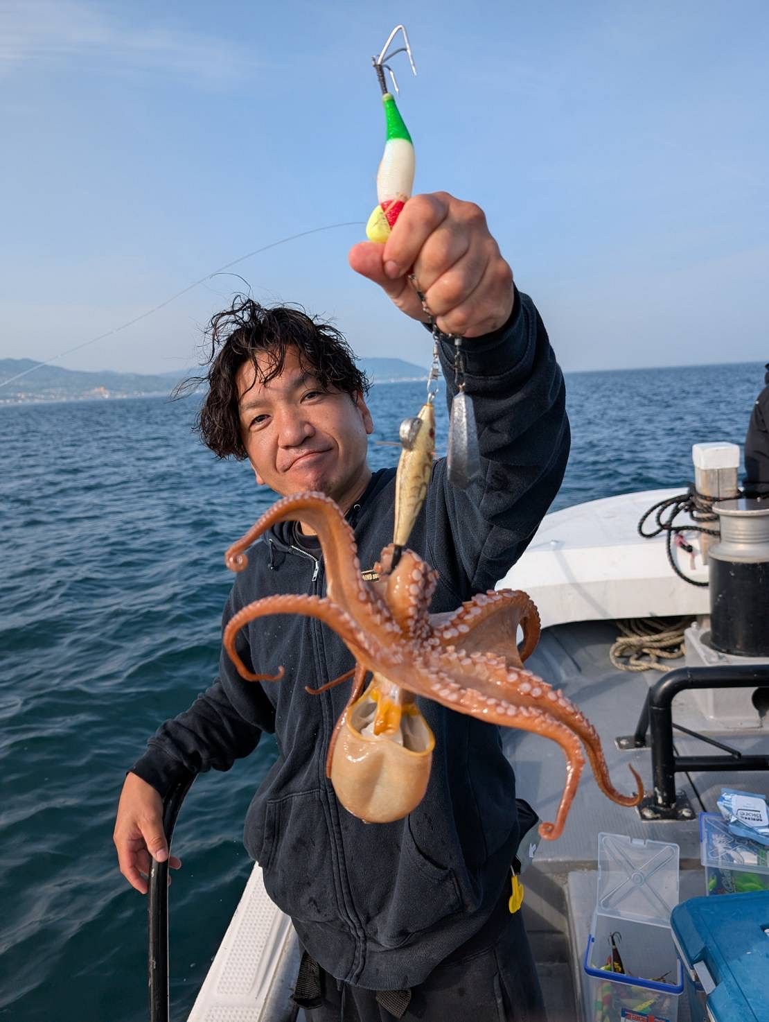 本日最初のお写真は、朝イチに2.4kg大タコゲットされた日野さまです?普通に巻き上げて来てたのでまさかのサイズにビビりました??