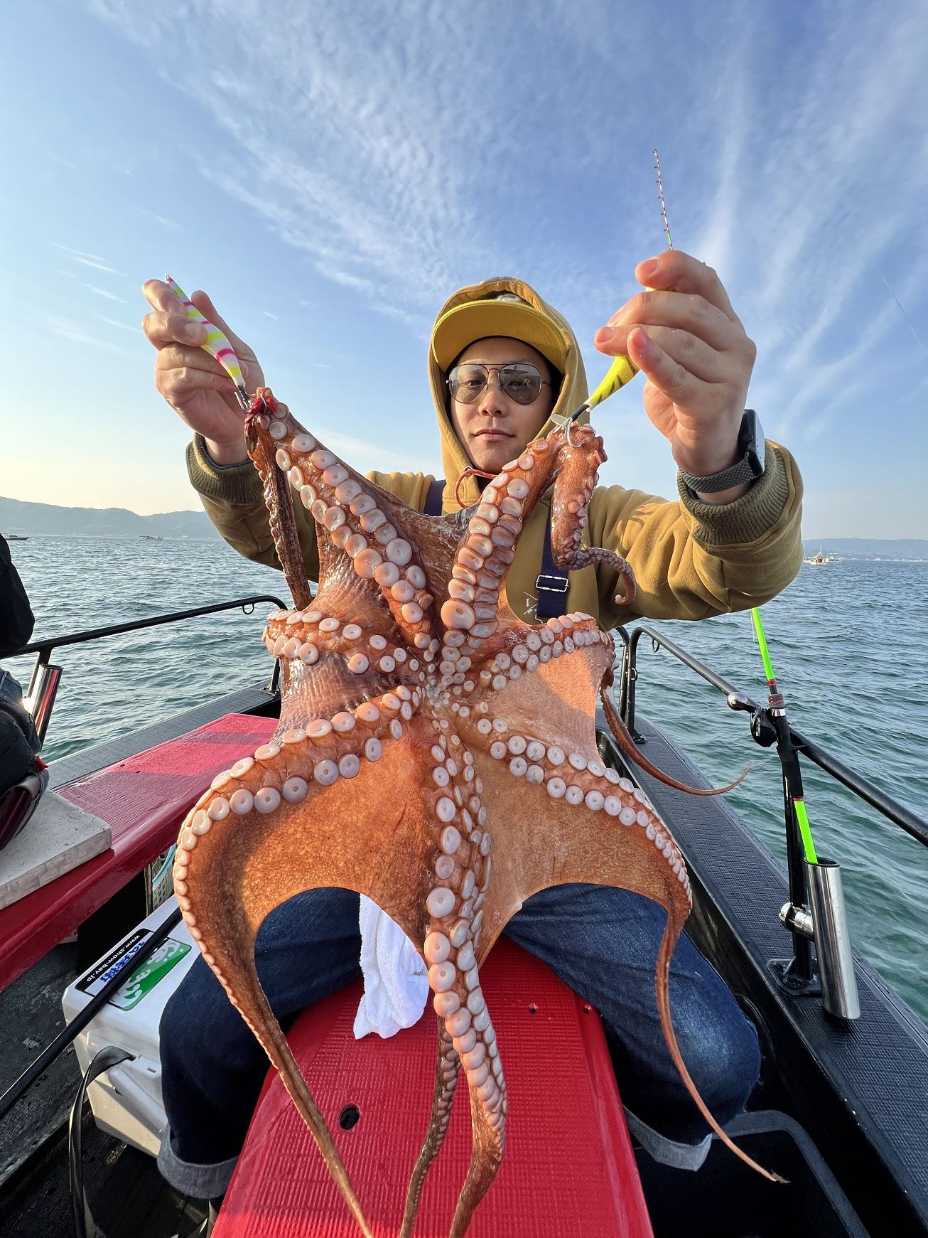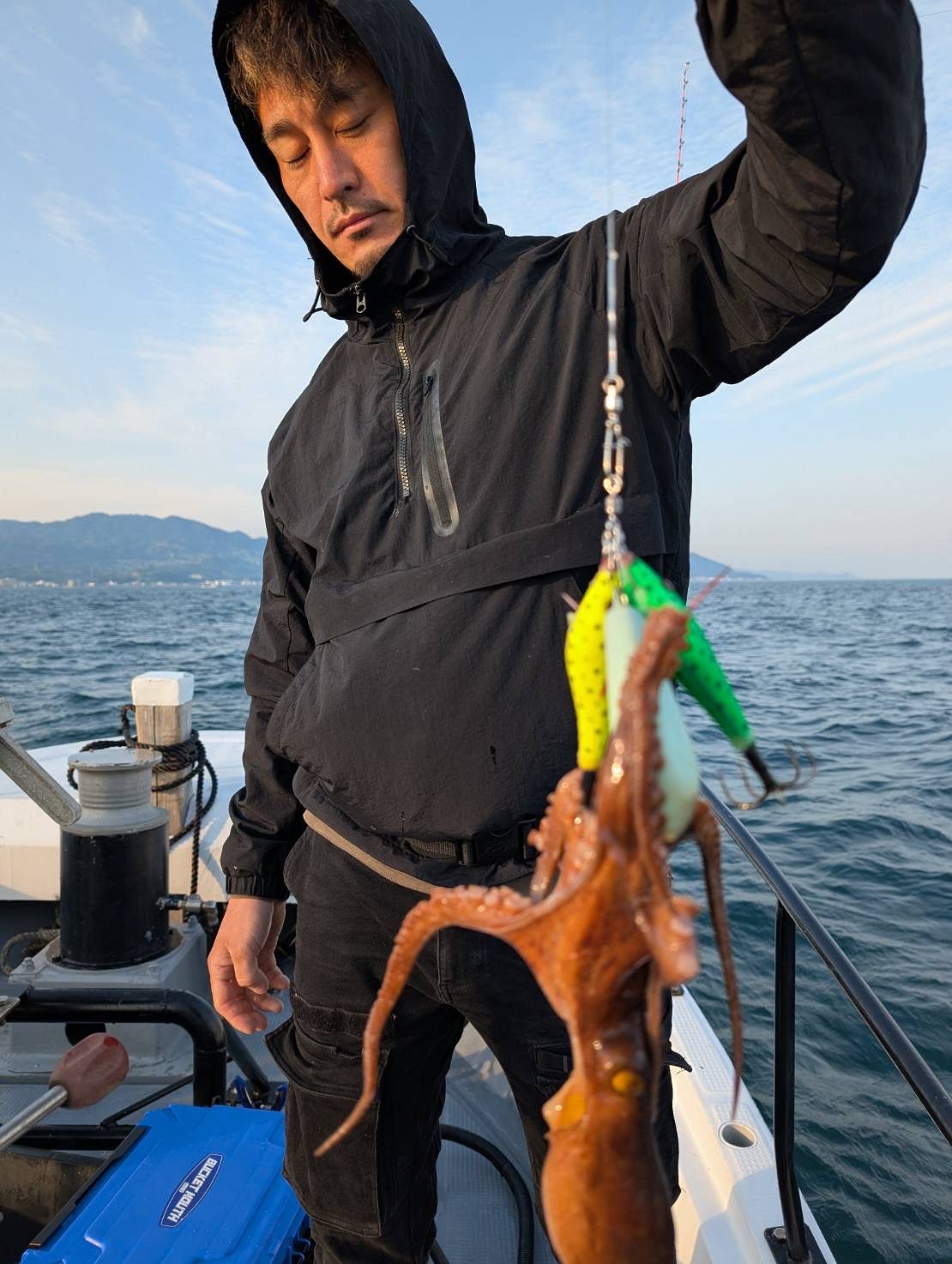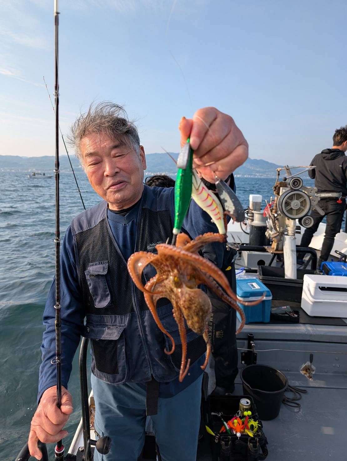 本日最初のお写真は、朝イチに2.4kg大タコゲットされた日野さまです?普通に巻き上げて来てたのでまさかのサイズにビビりました??